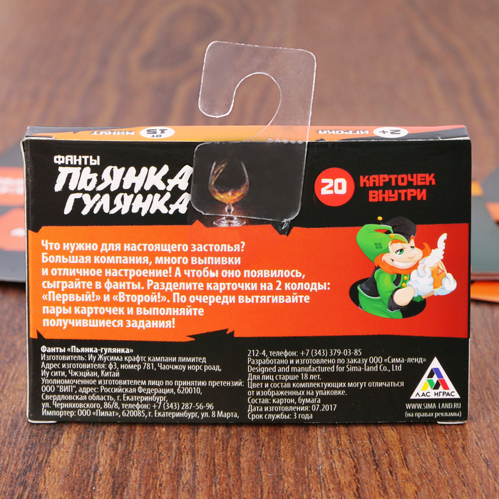 Купить игра для компании "фанты пьянка - гулянка" 20 карт от 80 руб. с доставкой до пункта выдачи в Татарске. Интернет магазин ДекаМаркет. Оплата при получении.